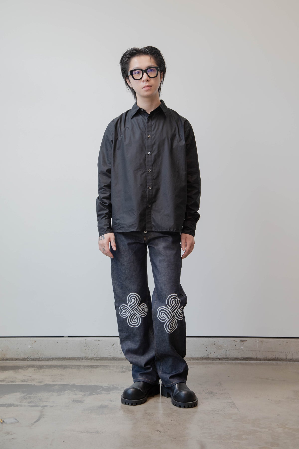 FW24 limited—edition capsule collection in collaboration with Andrea M Smith, comprised of select silk and cotton button-downs, and signature painted denim.