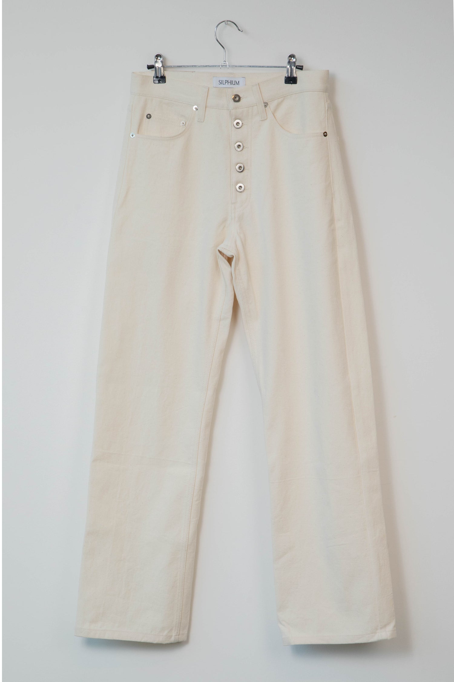 THE CORE DENIM IS OUR SIGNATURE STYLE, FEATURING SCOOPED BACK PATCH POCKETS, AN EXPOSED BUTTON FLY, WIDE LEG AND DROP CROTCH.