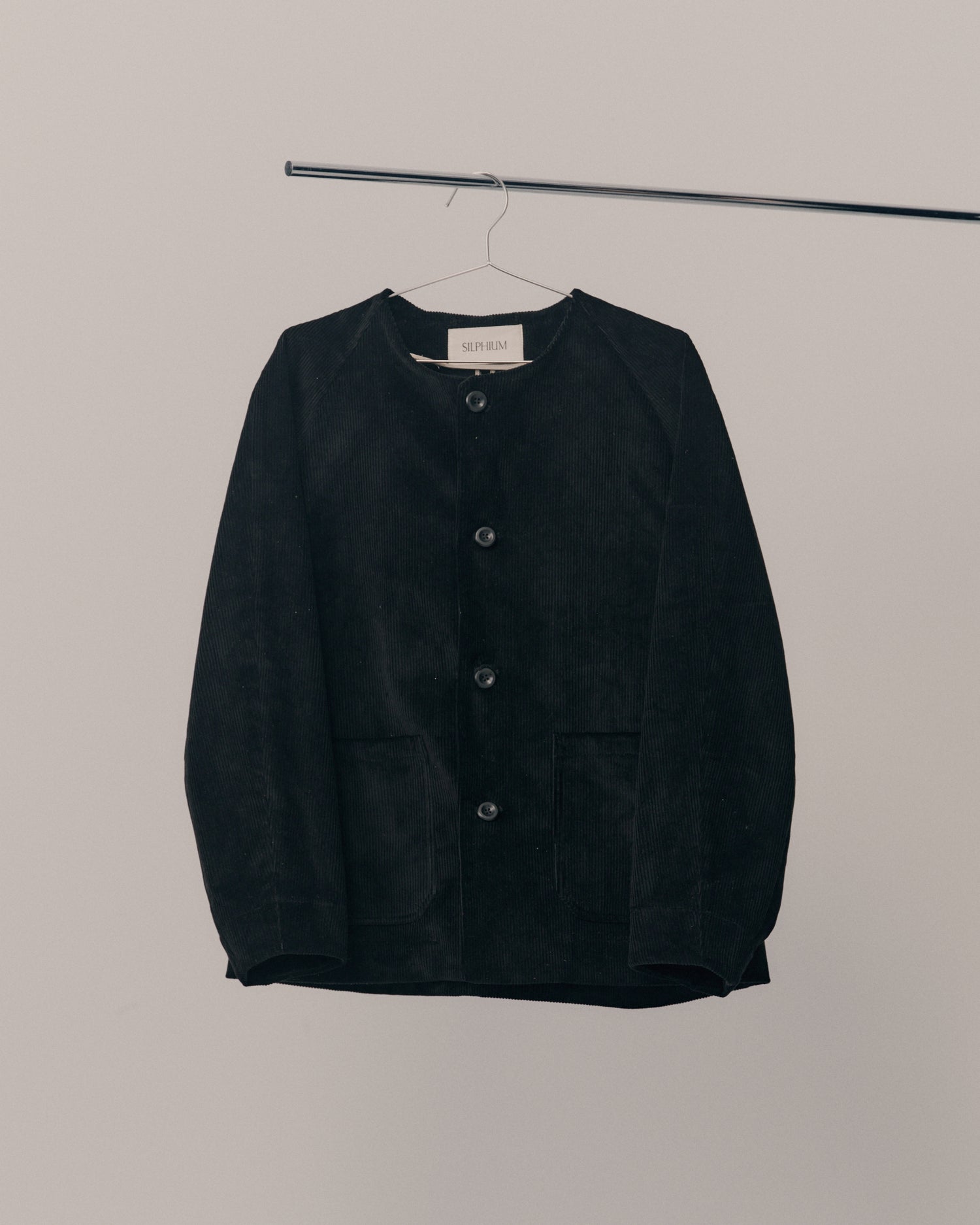THIS WORKWEAR INSPIRED SILHOUETTE FEATURES TWO PATCH POCKETS, OUR SIGNATURE LOCKER HOOK AND GENUINE COROZO BUTTONS AT THE CENTER FRONT PLACKET. THE JACKET IS CUT FROM A 100% COTTON CORDUROY SOURCED IN JAPAN AND IS UNLINED, WITH BIAS BOUND SEAMS.