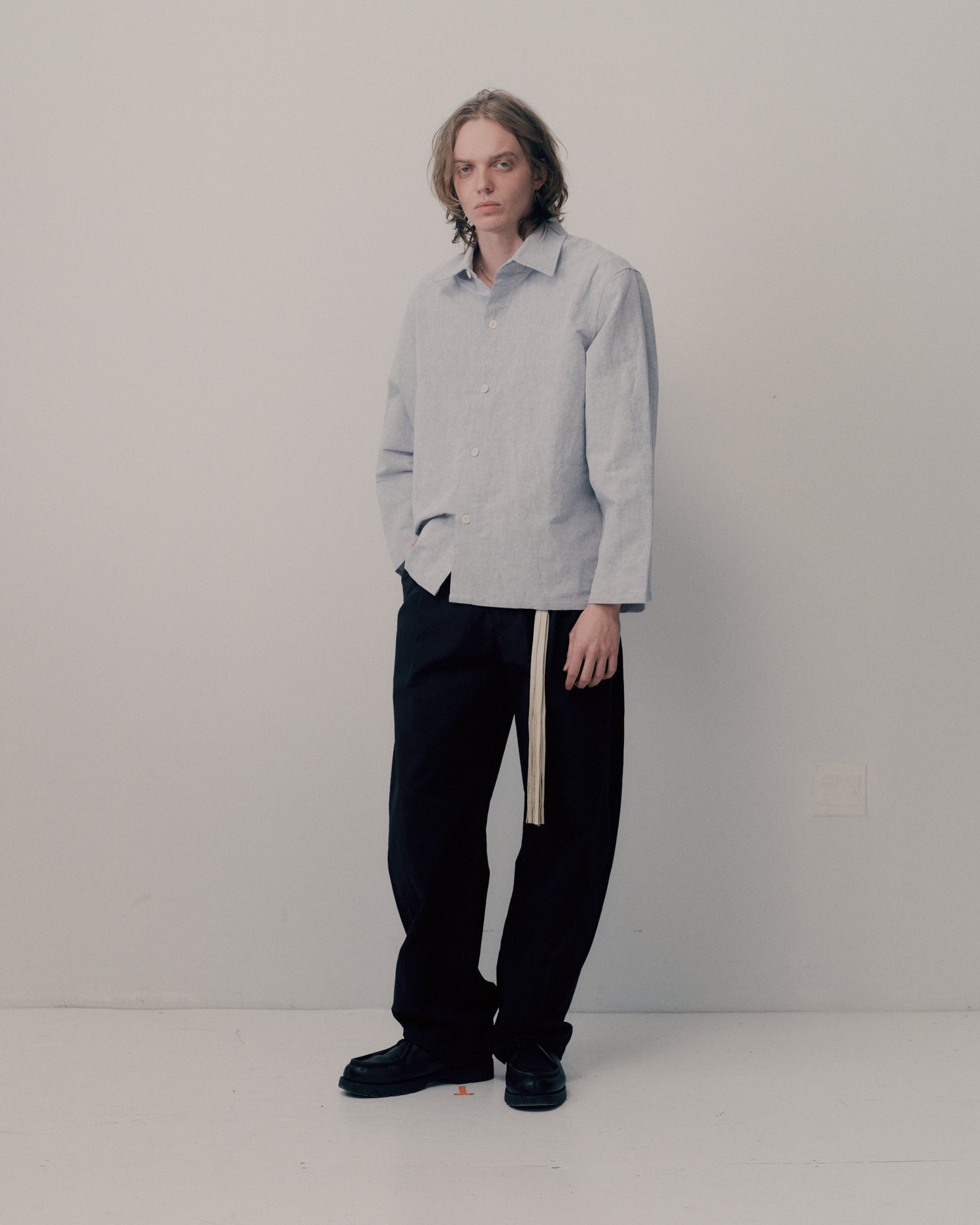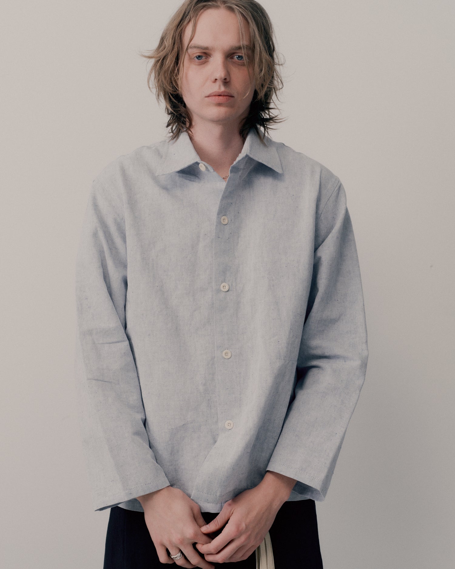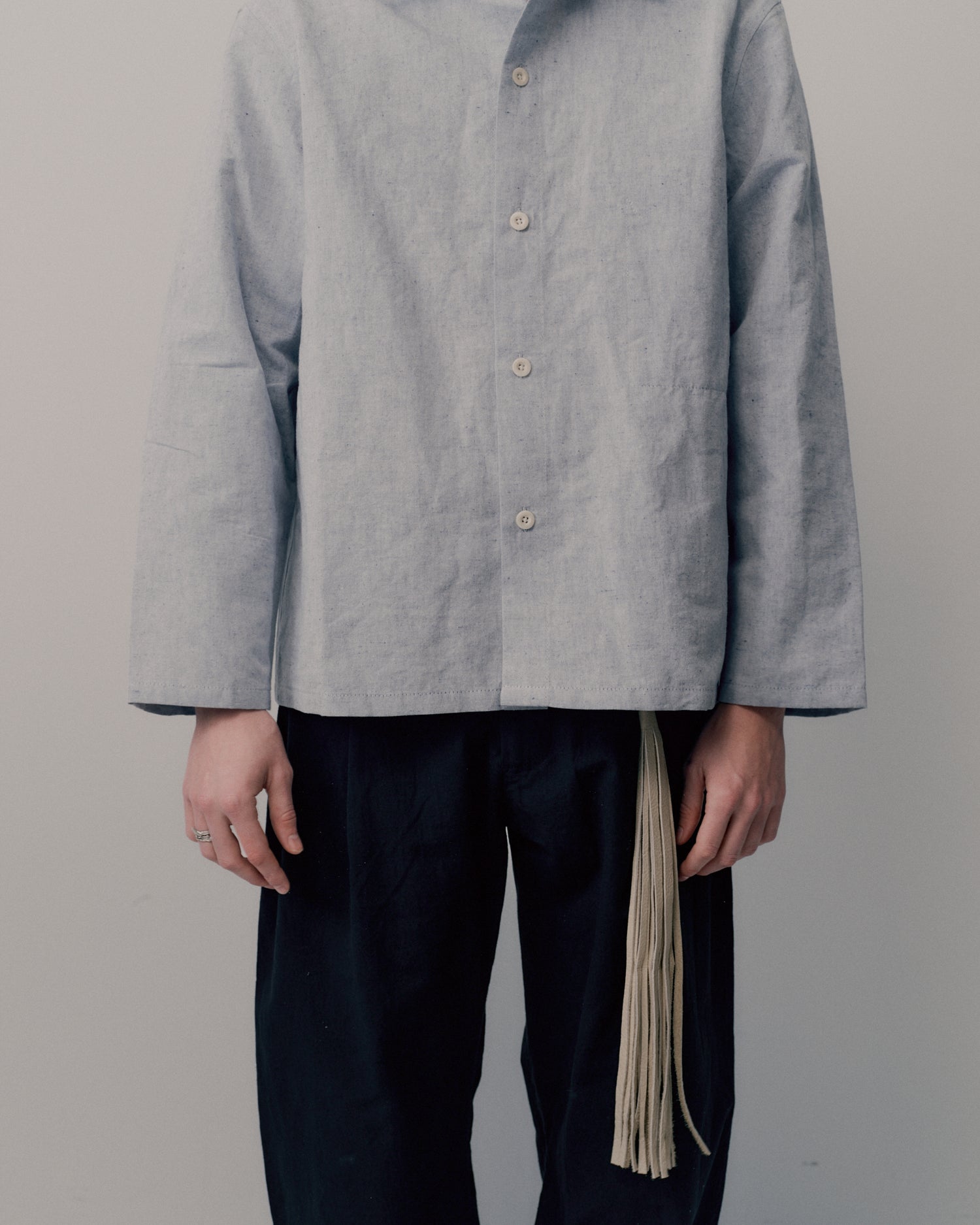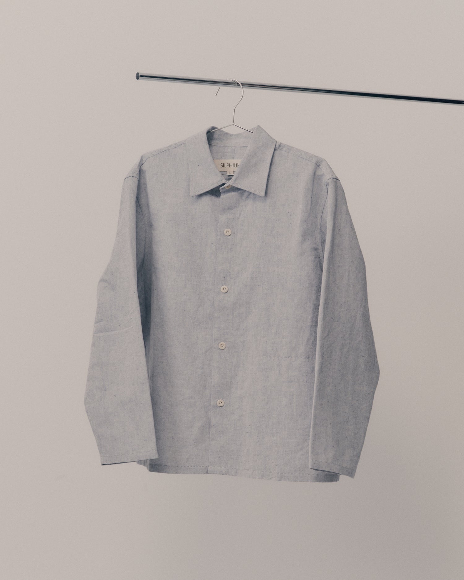 THE SEBRELL SHIRT IS A NEW SILHOUETTE INSPIRED BY A CLASSIC FRENCH WORKWEAR JACKET. MADE IN A MID-WEIGHT COTTON/LINEN BUFF CLOTH FROM JAPAN, THE SHIRT CAN DUAL AS A BUTTON-DOWN AND A LIGHT LAYER.