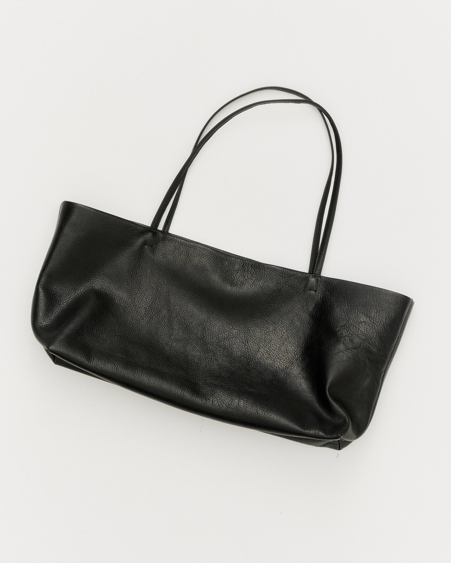 THE WIDE SHOPPER IS A SLEEK, PERFECTLY PROPORTIONED TOTE, FEATURING THIN LEATHER STRAPS, A SNAP CLOSURE.